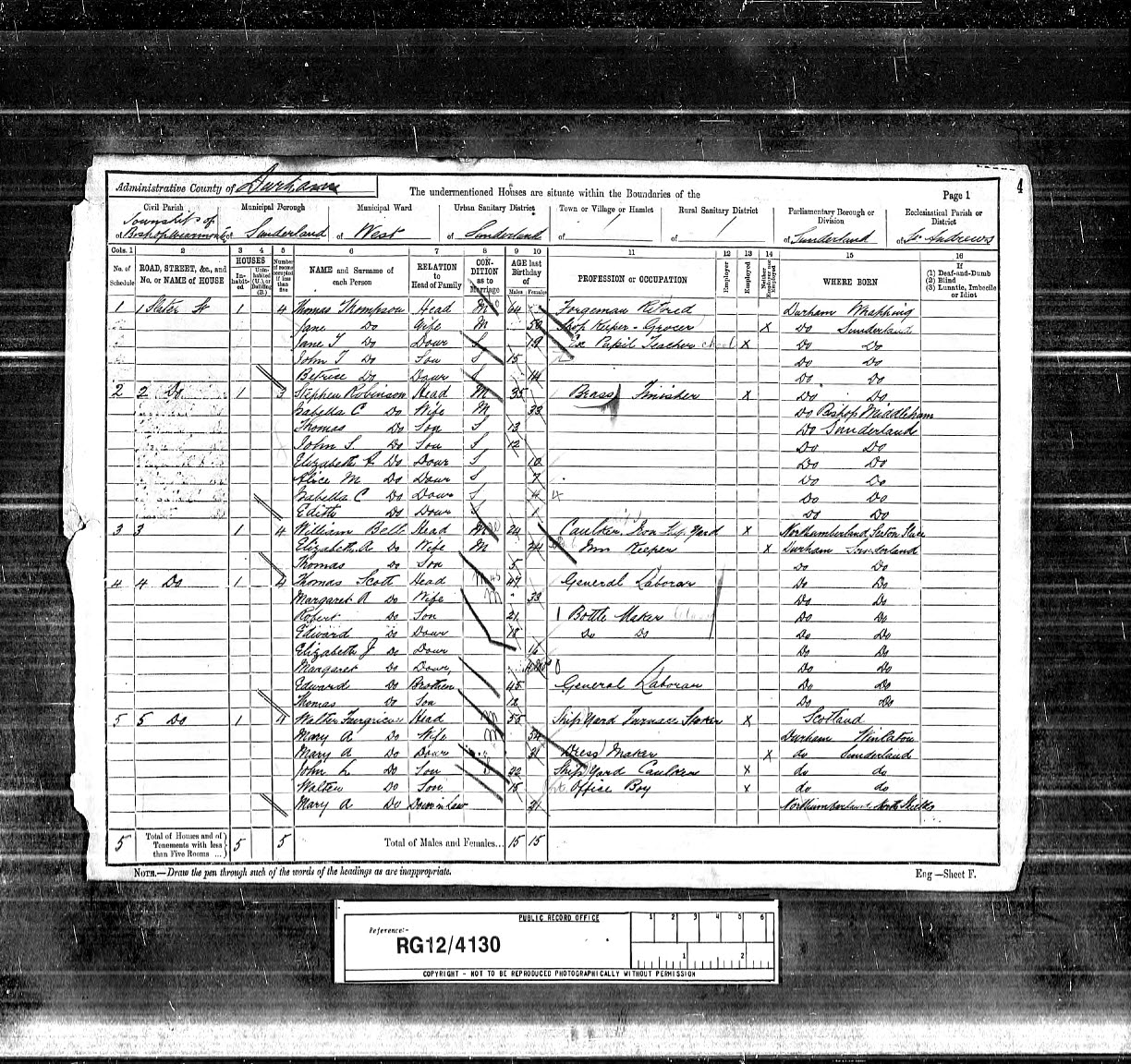 5 Dock Terrace, Bishopwearmouth - 1871 4 Mount Pleasant, Bishopwearmouth - 1881 2 Slater Street, Sunderland - 1891 to 1895 |